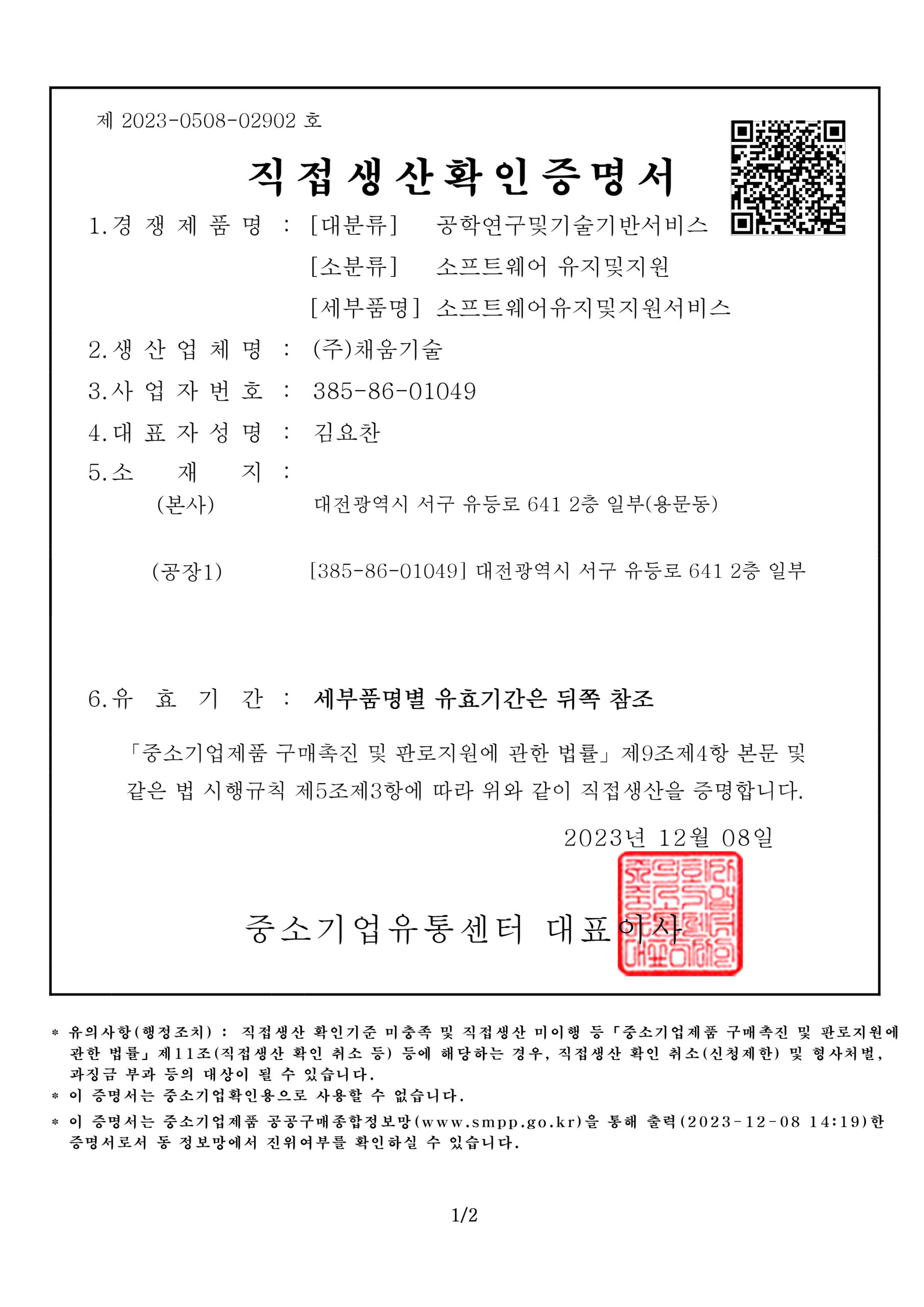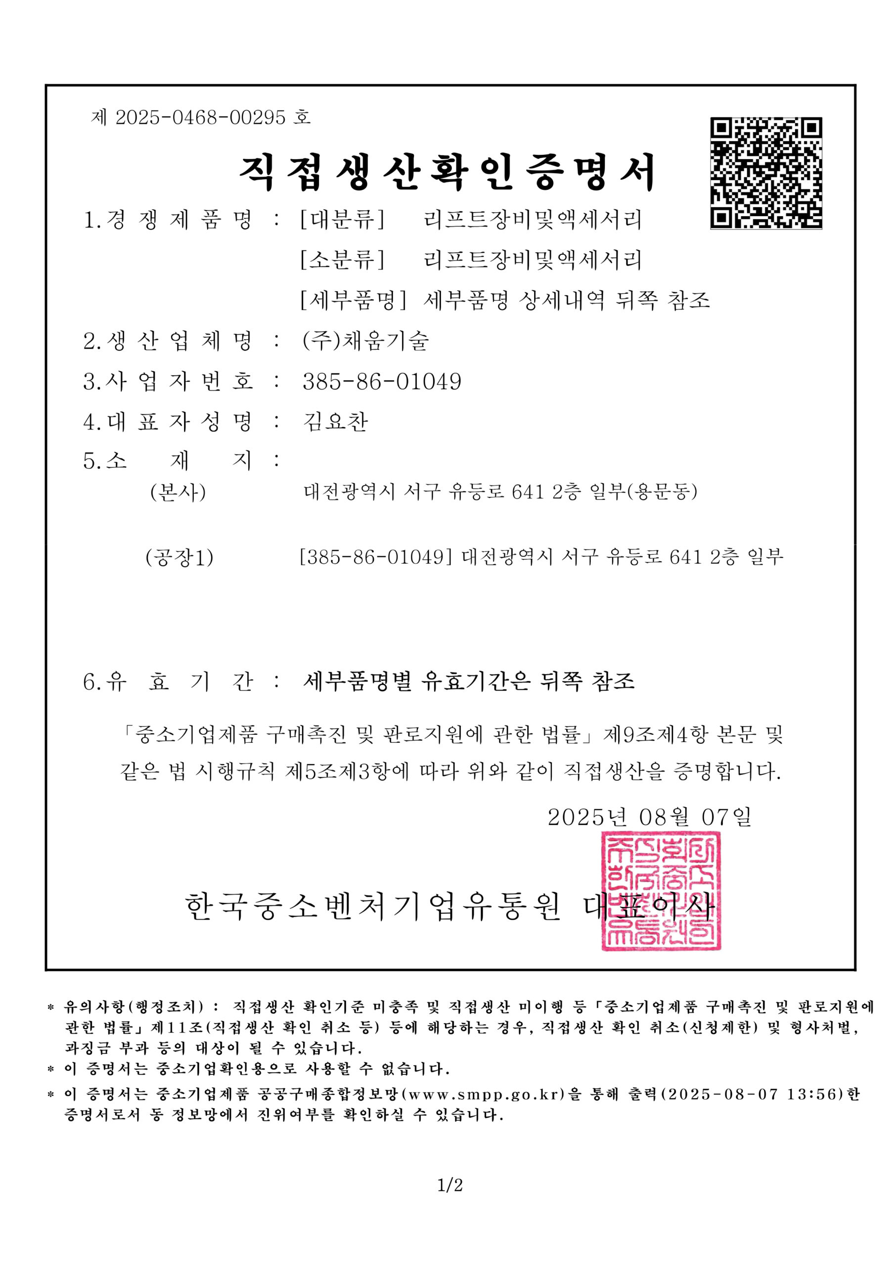 [ 직접생산확인증명서 ]
