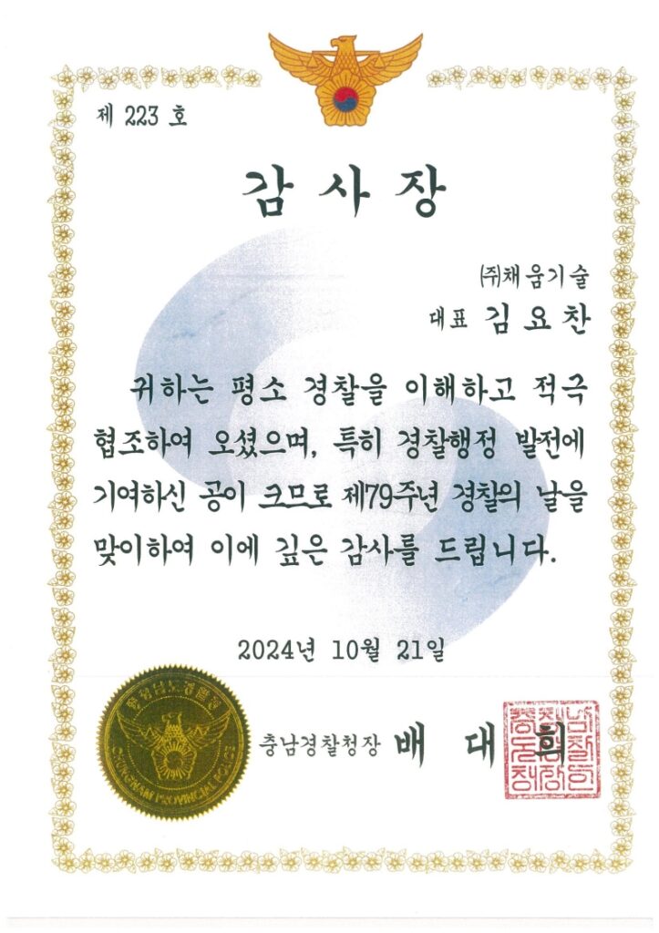 감사장_충남경찰청